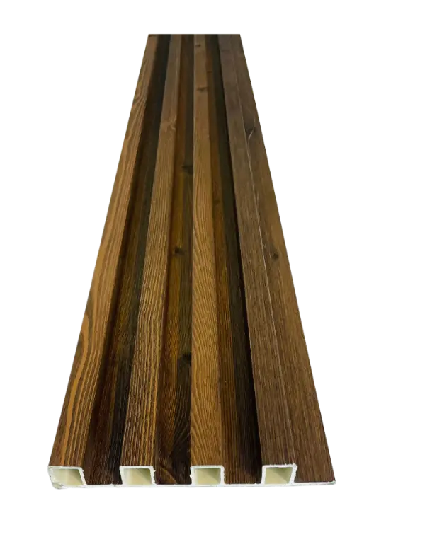 Rich WPC fluted wall panel in Acacia finish, featuring a deep dark brown wood tone that blends natural beauty with waterproof durability ideal for elegant wall and ceiling applications.