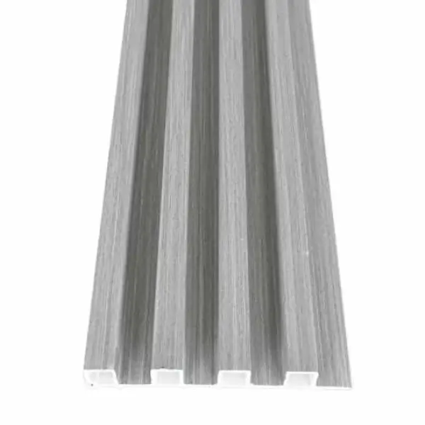 Modern WPC fluted wall panel in Classic Grey finish, offering a sleek and neutral aesthetic with the strength, waterproofing, and low-maintenance benefits of plastic — perfect for contemporary walls and ceilings.